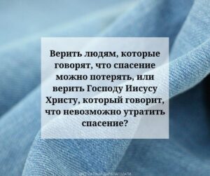 Вопрос состоит в том, Николас, верите ли Вы, что Господь Иисус говорит правду. Вы говорите: “люди говорят, что [спасение] происходит не через одну лишь веру и что его можно потерять.” Это правда. Многие так говорят. Так что, Вы верите им или Господу Иисусу Христу? Они не могут быть все одновременно правы, поскольку то, что они говорят, противоречит друг другу.