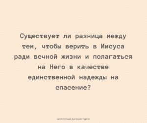 Недавно, пересматривая наши ранние рассылки, я наткнулся на статью, в которой использовалось выражение моя единственная надежда на спасение несколько раз. Автор говорил о необходимости иметь “…полное доверие Иисусу Христу в качестве единственной надежды на спасение”. Он говорил о человеке, который не ходил с Господом, но который сказал: “Он – моя единственная надежда на вечную жизнь”. Я редактировал эту статью, и не увидел ничего плохого в ней в тот момент.