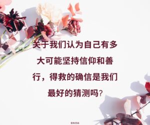 第一个问题就是我们说的救恩的确信( assurance of salvation)是什么意思。
