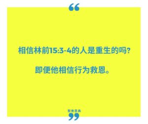 我相信林前15:3-4和约3:16。但我确信我已经重生了,因为我相信约3:16是真的。如果我只相信林前15:3-4,我仍然没有重生。(关于“你们若持守我所传给你们的道,就必因此得救”(林前15:2)这句话的讨论,请看这篇文章,听听这个播客。这节经文关注的是成圣,而不是重生。)