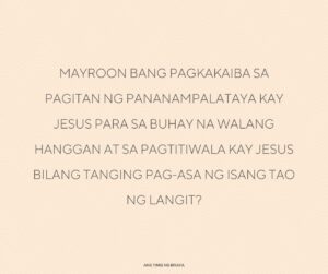 Wala tayong umaasang pananampalatya. Mayroon tayong nakasisigurong pananampalataya (1 Juan 5:13). Hindi tayo nagtitiwala kay Jesus bilang tangi nating pag-asa ng langit. Nananampalataya tayo sa Kaniya bilang Taga-garantiya ng buhay na walang hanggang hindi maiwawala.