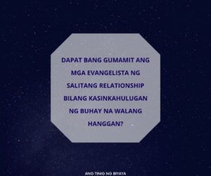 Sa liwanag ng pagkakaibang ito, kung nais ng isang evangelistang gamitin ang terminong relationship upang ilarawan ang regalo ng buhay na walang hanggan, kailangan niyang ipaliwanag kung ano ang pinakahuhulugan niya. Gaya nang tinalakay sa nakaraang blog, ang salitang relationship ay hindi masusumpungan sa Evangelio ni Juan. Ang ikaapat na evangelio ay madalas tukuyin bilang ang Evangelio ng buhay, hindi ang Evangelio ng relationship. Ito ay dahil hindi kailan man tinawag ng Panginoon ang mga hindi mananampalatayang manampalataya sa Kaniya para sa isang relationship. Sinabihan Niya ang mga hindi mananampalatayang kailangan nila ng buhay na walang hanggan (Juan 3:16; 4:10, 14; 11:26). Samantalang hindi naman mali ang paggamit ng salitang relationship sa ganitong paraan sa ebanghelistikong kalagayan, hinihikayat ko tayong lahat na gamitin ang lenggwahe ng teksto sa pagbabaghagi ng ating pananampalataya. Si Jesus ay nagbabanggit ng regalo ng buhay na walang hanggan, at ganuon din dapat tayo.