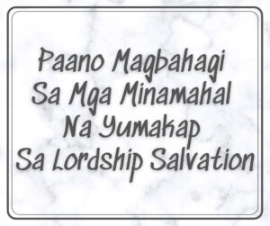 Hindi natin kailangang magbigay ng mahaba at kumplikadong mensahe upang mabigyang linaw ang isyu sa mga nanghahawak ng Lordship Salvation. Keep it simple, saint. Iyan ang KISS method ng pageebanghelyo. Tingnan ang Juan 3:1-18 at Juan 4:1-26.