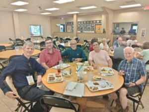 Bob Wilkin eating lunch with Zoltan, Slavo, and Tom.