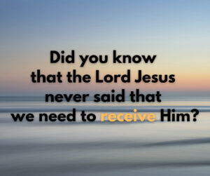 Receiving Christ is used one time in John’s Gospel as an illustration of faith in Christ.i There are many such illustrations in John’s Gospel, including drinking the water of life, eating the bread of life, and coming to Jesus. But we would never say that eating, drinking, and coming are synonyms for believing. Nor should we be saying that receiving is.