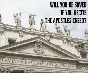 But what if you believed the Apostles Creed was true? Would you be saved then? No, because the Apostles Creed does not contain the saving message. Yes, it recounts some very important facts about Jesus’ life which we should all believe to be true. But it does not give the saving message. Here is the Creed:
