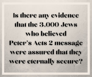 So, the question is whether Peter’s Jewish hearers that day believed that Jesus is the Christ, the Messiah (cf. John 11:27; 20:31; 1 John 5:1). They clearly did. Peter was persuading the crowd that Jesus of Nazareth was not a false Messiah, but indeed was the long-promised Messiah. After citing Ps 110:1, a Messianic verse in a Messianic Psalm, Peter said, “Therefore let all the house of Israel know assuredly that God has made this Jesus, whom you crucified, both Lord and Christ” (Acts 2:37). Notice the words know assuredly.
