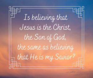 Therefore, it is correct to say that to believe that Jesus is the Christ, the Son of God, is equivalent to believing that He is my Savior, as long as I understand by the words “my Savior” that He has saved me once and for all because I have believed in Him for everlasting life. (Believing that He is the Savior of the world, John 4:42, means that He has made everyone savable by His shed blood on the cross [John 1:29]. That is foundational to, but not the same as, believing that He has saved me, that is, that He has given me everlasting life that cannot be lost.)