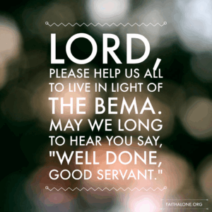 Lord, please help us all to live in light of the Bema. May we long to hear You say, “Well done, good servant.”