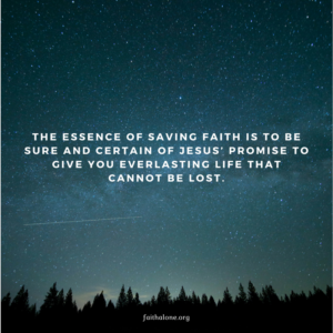 - The essence of saving faith is to be sure and certain of Jesus’ promise to give you everlasting life that cannot be lost.