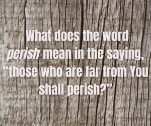 In John 3:16 that word refers to eternal condemnation (compare John 3:17-28). So the questioner understands the first line to mean, “those who are far from You shall be eternally condemned.”