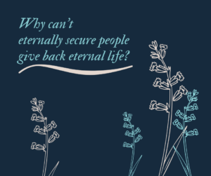 Since we are sinners in this life, it is possible that a born-again person might get mad at God and in a moment of spiritual insanity want to give everlasting life back. Frankly, I’ve never met a person who was convinced he had everlasting life who indicated he ever wanted to give it back. It is people who don’t believe in eternal security who wonder about this question. But I suppose it might happen. If it did happen that a person with everlasting life decided he wanted to give it back (meaning he stopped believing in the promise of everlasting life that cannot be lost), the person would not get his crazy wish.