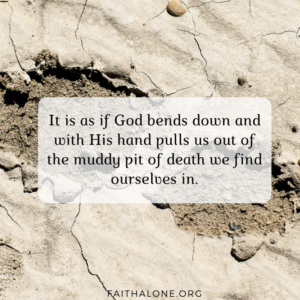 The other option is what my friend did. It is to understand that in our own strength and goodness we are helpless. It is only when we realize that we receive eternal life by faith alone that we are righteous in God’s eyes (Paul says this in the next verse – Gal 3:22). This is the only way we receive eternal life. It is as if God bends down and with His hand pulls us out of the muddy pit of death we find ourselves in.