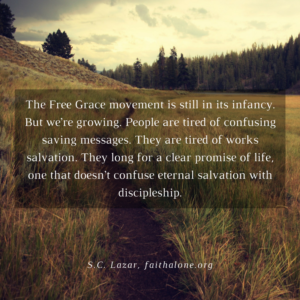 The Free Grace movement is still in its infancy. But we’re growing. People are tired of confusing saving messages. They are tired of works salvation. They long for a clear promise of life, one that doesn’t confuse eternal salvation with discipleship. Maybe Wilson longs for that too.