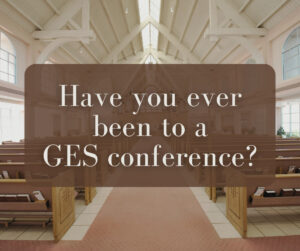 Whether or not you have ever attended a GES conference, I would encourage any of you who are able to come. Maybe one of these will be the first time one of our conferences is available near your home. It could be a part of your vacation plans. I am sure you will enjoy it!