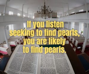 If you listen, seeking to find pearls, you are likely to find pearls. If you listen, seeking to find swine, you are likely to miss the pearls.