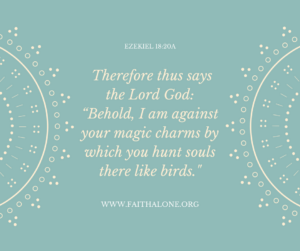 Ezekiel 13:18-23 talks about false prophetesses who “hunt for souls.” These false prophetesses were involved in occult practices. The word occult means hidden or secret. They used magic charms (vv 18, 20) and likely used spells and incantations, for a price, to keep the people who came to them alive and well.
