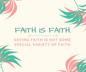 First, the reader is correct. Faith is faith. Saving faith is not some special variety of faith. Faith that delivers from temporal judgment is not different than faith that the sun is shining. Faith is faith.