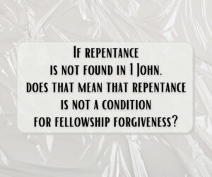 Finally, a word about the difference between repentance and confession of sins. First John does not mention repentance even once. The condition for a person who is walking in the light to have fellowship forgiveness is for him to confess his known sins. However, if one is not walking in fellowship with God, then the condition for fellowship forgiveness is repentance, turning from one’s sinful ways. But since John is writing to people in fellowship with God (1 John 2:12-14), he does not mention repentance and restoration of lost fellowship.