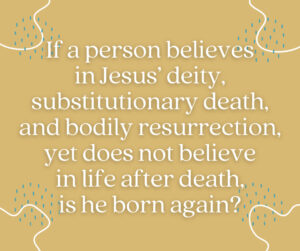But does it make sense that we can substitute everlasting life in John 3:16 with temporary life or probationary life and still have the same message? Obviously not. That is why I understand some people to be saying that if a person believes in Jesus (which they understand to mean that we believe in Jesus’ deity, substitutionary death on the cross, and His bodily resurrectioniv), then we are eternally secure even if we do not believe we receive anything from Jesus as a result of believing in Him. If the result of believing in Jesus is not part of what it means to believe in Him, then a person who did not believe in life after death would be born again if he believed in Jesus’ deity, death, and resurrection.