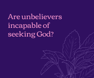 First, the Calvinist answer is that Paul is talking about people prior to the new birth. He is not making a blanket statement that none seek God. He is saying that no unregenerate seek God. In the Calvinist view, regeneration precedes faith, even if only logically. Some Calvinists suggest that there can be years between the new birth and coming to faith. In that view, born-again unbelievers can seek God, but no other unbelievers can seek God.