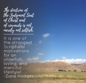 The doctrine of the Judgment Seat of Christ and of rewards is not merely not selfish. It is one of the strongest Scriptural motivations for an unselfish, loving, and merciful lifestyle!