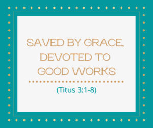 I think Paul’s letter to Titus summarizes the “grace” attitude to good works. Consider this passage: