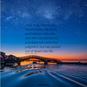 “Truly, truly, I say to you, he who hears My word, and believes Him who sent Me, has eternal life, and does not come into judgment, but has passed out of death into life” (John 5:24).