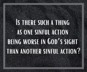 The question Bob is asking is this: Is there such a thing as one sinful action being worse in God’s sight than another sinful action?