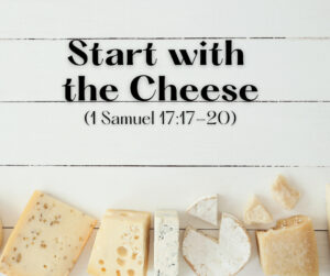 The same principle applies in ministry. Don’t start with fighting Goliath. Start by serving the cheese. That is, be faithful in, and actively look to serve in, the relatively small acts of service that every Christian community needs to get done in order to function well. As you faithfully do the ministry before you, opportunities will arise to do other acts of service—the kind of ministry you might desire or dream about doing. That will often involve stepping up and volunteering to do the jobs no one else wants to do—as David did with Goliath.