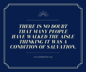 Human nature is deeply legalistic. It always wants to add its own works, efforts, and man-made rituals into the saving message. That includes altar calls. There is no doubt that many people have walked the aisle thinking it was a condition of salvation.