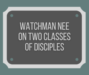 Hence the gist of this Scripture is to divide into two classes the disciples who have believed in the Lord and possess eternal life. One class denies self and takes up the cross; the other class does not deny self nor takes up the cross. One class is willing to forsake all for the Lord and to lose the soul, while the other class seeks to gain the pleasures of the world for self and is unwilling to lose the soul. A disciple of Christ is one whom the Lord has separated out from the sinners. And once again He will separate: this time, separating a self-denying disciple from the non-self-denying one. We ought to know that our future position in the kingdom is decided by our deeds today… (Nee, The Salvation of the Soul, p. 10).