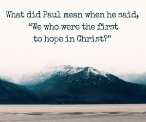 Ephesians 1:12, which uses the verb elpizein with a prepositional prefix (hence proelpizein), is referring to those “who first hoped [or first trusted] in Christ.” Likely Paul is thinking of Jews who like himself, even before they came to faith in Christ, were hoping the Christ would come. While this might refer to Jewish believers who hoped in Messiah’s soon second coming before Gentile believers began to do so, more likely Paul is speaking of Jews who for millennia had hoped for the coming of Christ. Charles Hodge says, “It designates not the first converts to Christianity, but the Jews who, before the Gentiles, had the Messiah as the object of their hopes” (Ephesians, p. 59).