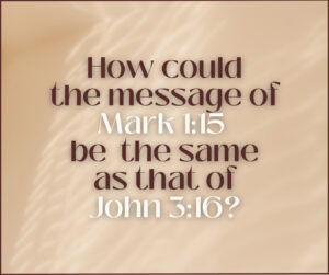 Mark from the Northeast sent in an oft-asked question about the gospel in Mark 1:14-15: