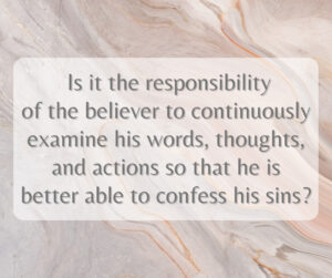 For an obsessive-compulsive recovering perfectionist like me, the thought that I need to introspect every ten minutes is frightening. The Holy Spirit is perfectly willing and able to convict us all of our sins. He uses our families to reveal our sins as well. We do not need an alarm to go off every few minutes to tell us to confess. The Scriptures don’t even hint at such an idea.