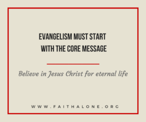 But here’s the thing. We would constantly come back to the “core” message, i.e., inviting the person to believe in Jesus for eternal life.