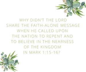 The Lord did not always evangelize every time He spoke. He might have shared the faith-alone message some other time that day to the people who heard Him say the words now found in Mark 1:15-16. But if He did, Mark did not choose to include it.
