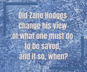 Zane Hodges departed this life in November of 2008. In the dozen years since then, many people have suggested that he changed his view of the saving message. Many pointed to a 2006 message in which he argued that a person is not born again until he is sure that he is eternally secure by faith in Christ. That position is called assurance is of the essence of saving faith. People have suggested that this was a view Hodges had never advocated before 2006.