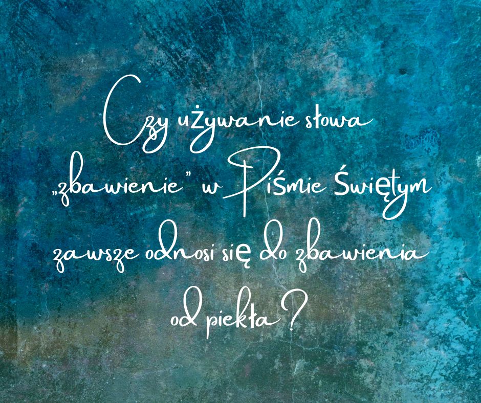 Słowo „zbawienie” zarówno w języku angielskim [oraz polskim1], jak i w grece Nowego Testamentu może oznaczać różne rzeczy. Kiedy jest ono używane, musimy zapytać: zbawienie od czego? Kontekst zawsze określa, o jakim rodzaju zbawienia mówi autor. Niestety, kiedy większość chrześcijan widzi słowo „zbawienie” w Biblii, to wtedy często zakłada, że oznacza ono zbawienie od piekła. […]