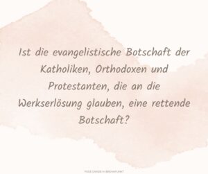 Wir von der GES2 glauben, dass Katholiken, Orthodoxe und Protestanten, die vom Prinzip der Errettung durch Werke überzeugt sind, alle unerlöst sind, es sei denn, sie glauben jetzt an Jesus, um ewiges Leben zu erlangen, oder sie haben in der Vergangenheit daran geglaubt. Das heißt, wir erkennen an, dass einige in diesen Gruppen in der Vergangenheit an Jesus wegen des ewigen Lebens geglaubt haben (z. B. durch Missionswerke oder Organisationen wie „Young Life“, „Cru“, „FCA“, oder gläubige Freunde usw.). Und wir erkennen an, dass einige in diesen Gruppen jetzt an Jesus wegen des ewigen Lebens glauben (im Gegensatz zu den Lehren ihrer Kirche). Um wiedergeboren zu werden, muss man an Jesus (an den Geber), und an die Verheißung des ewigen Lebens (an die Gabe) glauben. Sobald man das glaubt, ist man für immer gerettet (OSAS –once saved, always saved / deutsch: einmal gerettet, immer gerettet). Die Lehre dieser drei Gruppen steht im Gegensatz zu dem freien Geschenk des ewigen Lebens, das nicht verloren werden kann. Daher ist ihr Evangelium ein falsches Evangelium (vgl. Gal 1,6-9; 5,4).