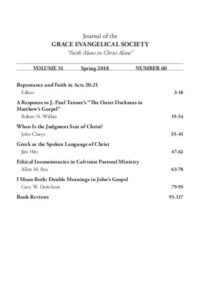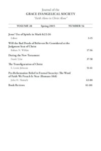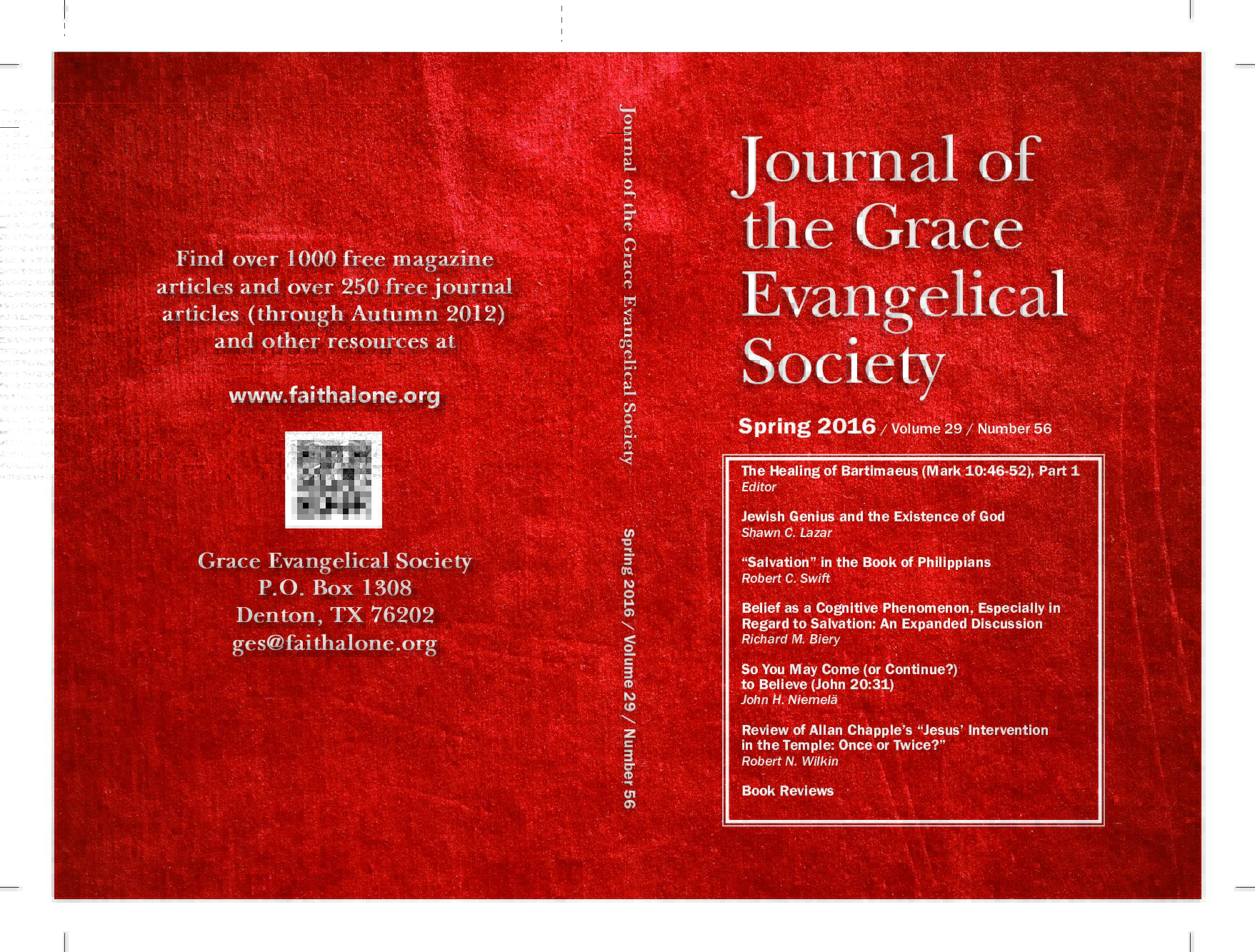 The Journal of the Grace Evangelical Society, published semi-annually, contains scholarly articles regarding the gospel and assurance.