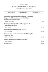 The Journal of the Grace Evangelical Society contains more in-depth articles, as well as book reviews. It is must reading for those who wish to stay abreast of current studies regarding the Gospel and assurance. There is no other journal like it. It alone deals exclusively with Gospel issues—and always from a grace perspective.
