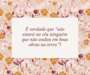 As palavras citadas no título deste blog são retiradas diretamente do blog de Morse. Seu ponto principal está bem expresso em sua conclusão de duas frases: “Ninguém no céu estará lá à base de suas boas obras, e não estará no céu ninguém que não tenha andado em boas obras na terra. Então, avançamos em santidade em direção ao nosso lar celestial porque Jesus já nos fez seus.”