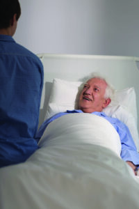 I walked into the hospice facility and introduced myself to the man. He was attempting to feed himself some food.