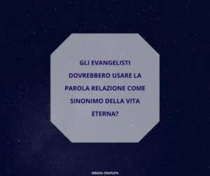 Alla luce di questa distinzione, se l’evangelista vuole usare il termine relazione/rapporto per illustrare il dono della vita eterna, deve spiegare cosa intende. Come discusso nel blog precedente, la parola relazione non si trova nel Vangelo di Giovanni. Il quarto vangelo è spesso indicato come il vangelo della vita, non il vangelo della relazione. Il Signore non ha mai chiamato i non credenti a credere in Lui per una relazione. Disse ai non credenti che avevano bisogno della vita eterna (Giovanni 3:16, 4:10,14, 11:26). Sebbene non sia necessariamente inappropriato usare la parola relazione in questo modo in un contesto evangelistico, vorrei comunque incoraggiare tutti noi a usare il linguaggio del testo quando condividiamo la nostra fede. Gesù ha parlato del dono della vita eterna, e così dovremmo fare anche noi.