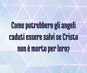 Come potrebbero gli angeli decaduti essere salvi se Cristo non è morto per loro? La risposta è che non possono.