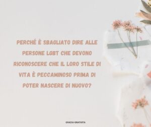 È una enorme distorsione del dono gratuito di Dio se si dice alle persone LGBT che devono impegnare le loro vite per Cristo per ottenere ciò che promette: la vita eterna non può essere perduta. Il problema non è la direzione futura delle nostre vite.