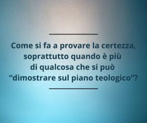 Come si fa a provare la certezza, soprattutto quando è più di qualcosa che si può “dimostrare a livello teologico”?