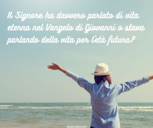 Quarto, la vita eterna è un bene presente. Gesù ha detto: “Chi crede in me ha vita eterna” (Giovanni 6:47). Si confronti Giovanni 5:24. Non si ottiene questa vita dopo la morte ma la si ottiene nel momento in cui si crede in Gesù. Infatti, se una persona sana di mente raggiunge l’età della responsabilità senza aver creduto in Gesù per avere vita eterna (1Ti 1:16) prima di morire, allora non l’avrà mai (Gv 11:25a; Ap 20:15).