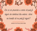 Ioan 11:26 – Isus a spus: „Și oricine trăiește și crede în Mine nu va muri niciodată. Crezi lucrul acesta?” Aceasta este promisiunea Lui, Cel care este Viața, pentru cel ce crede. Credinciosul nu va muri niciodată spiritual.